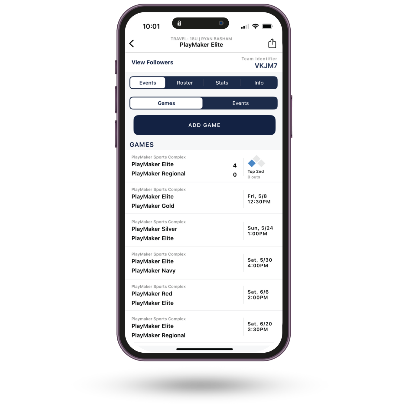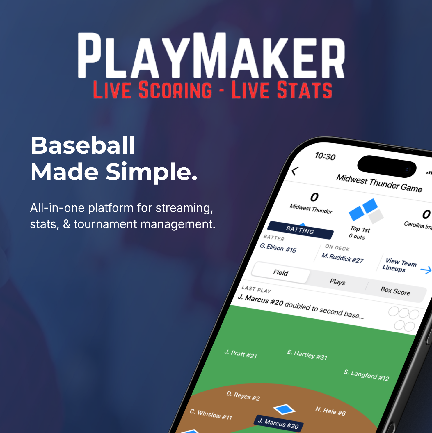 Easily track the score and stats of your team's games with our intuitive digital scorebook, and share live notifications with fans.