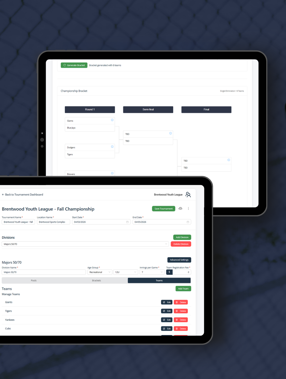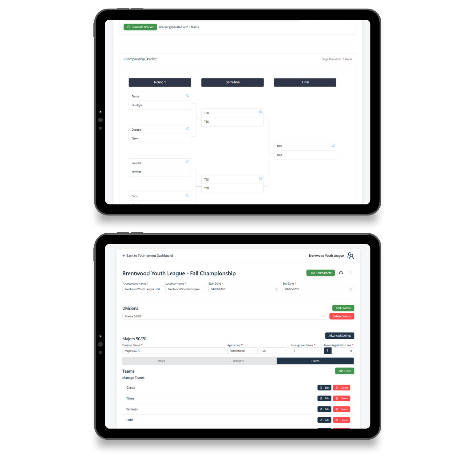 PlayMaker’s automated tournament tools save time and effort by updating brackets, schedules, and results automatically from live scores and stats.