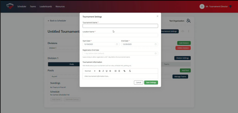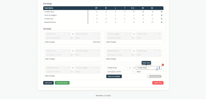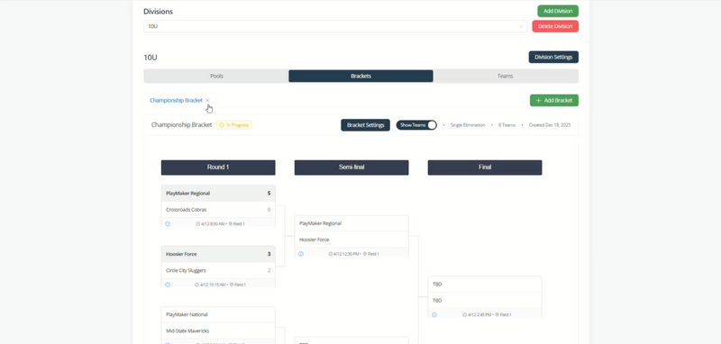 Generate pools, schedules, and brackets in just a few clicks.