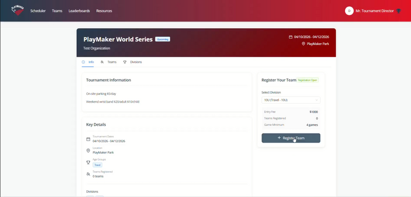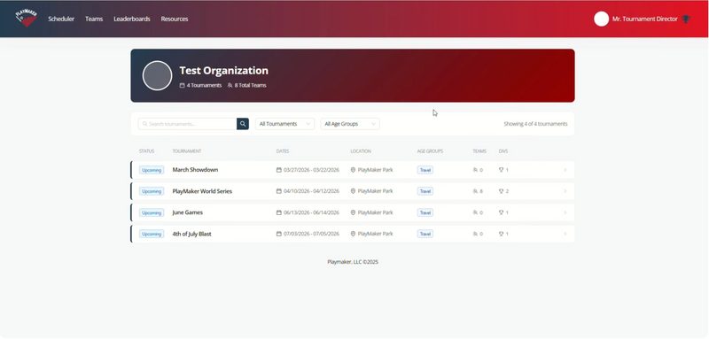 We built PlayMaker so tournament directors can evaluate and use it without demos or sales calls.